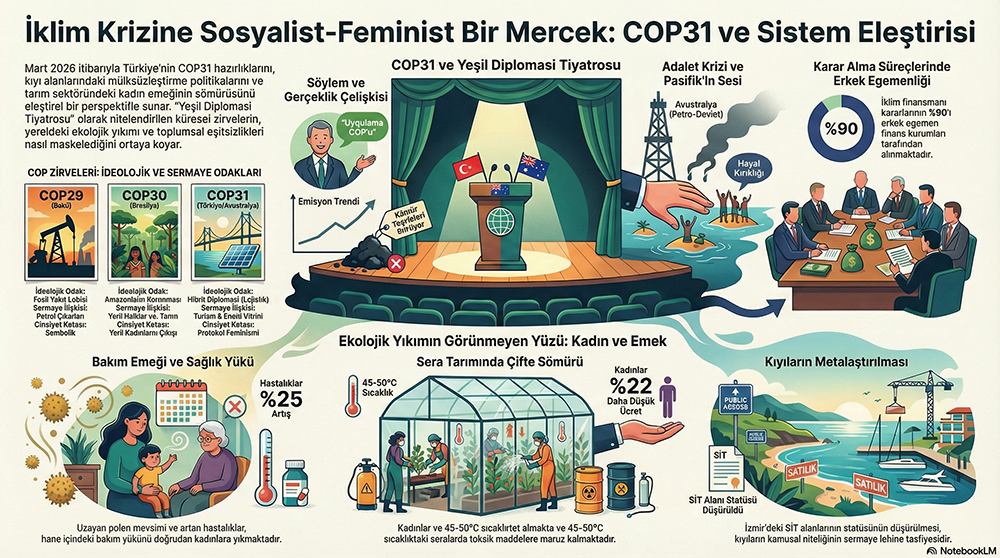 Mevcut veriler, yerelde kıyı yağması ve emek sömürüsü devam ederken, küresel ölçekte COP31’in yapısal bir değişimden ziyade bir “yeşil aklama” (greenwashing) aracı olarak kurgulandığını teyit etmektedir. Gerçek bir dönüşüm ancak fosil yakıt şirketlerinin kâr hırsı yerine kamusal yararı ve feminist iklim adaletini merkeze alan politikalarla mümkündür.